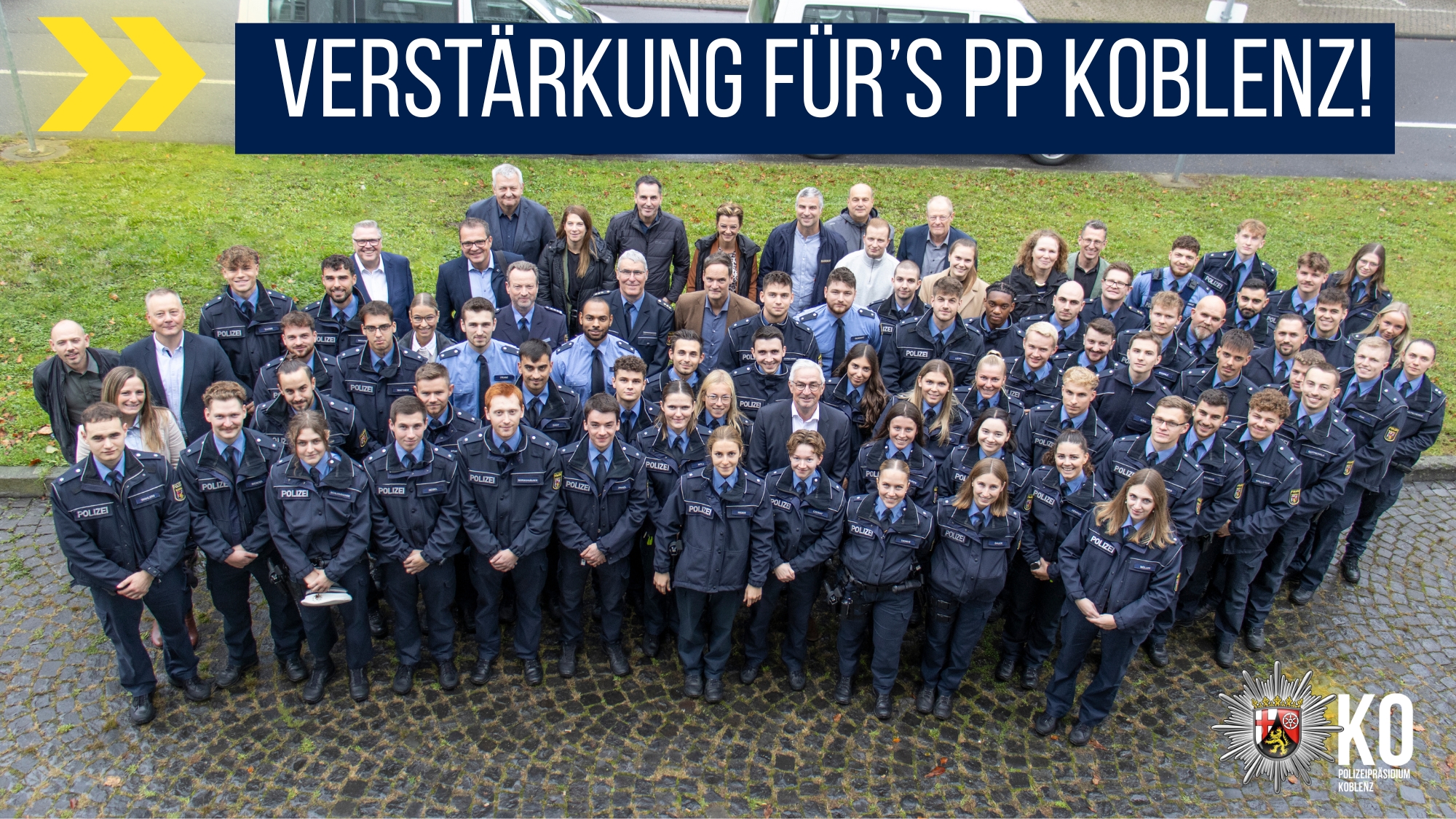 Das Polizeipräsidium Koblenz heißt alle Neuen herzlich willkommen und wünscht ihnen einen erfolgreichen Start in ihren Dienst!