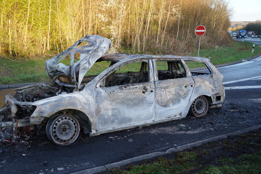 Der Pkw stand auf dem Verzögerungsstreifen zum Parkplatz Landsberg an der Warthe bei Kilometer 72, als das Feuer ausbrach. Der Fahrzeugführer konnte sich rechtzeitig selbst aus dem Fahrzeug retten und blieb unverletzt. Das Auto brannte jedoch vollständig aus.