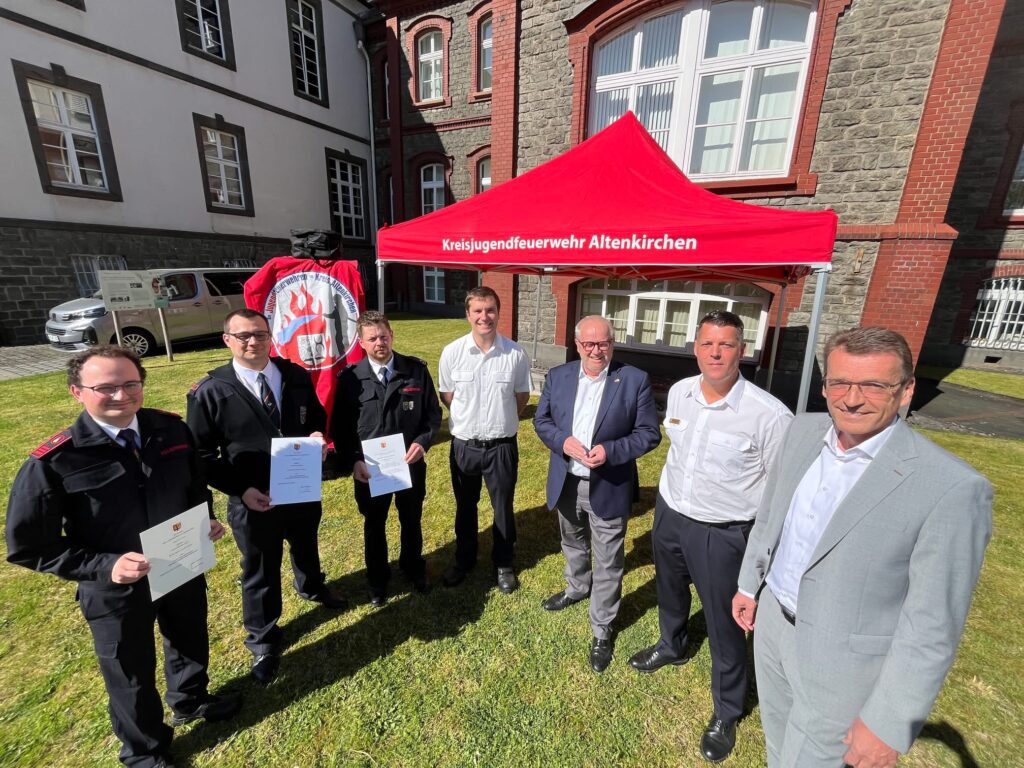 Für die Kreisjugendfeuerwehr Altenkirchen war es sowohl personell als auch materiell ein besonders erfreulicher Tag: Mit Paul Michel Jung aus Harbach und Steffen Heinke aus Steinebach wurden zwei neue stellvertretende Kreisjugendfeuerwehrwarte offiziell durch Landrat Dr. Peter Enders ernannt. Gleichzeitig konnte sich der Feuerwehrnachwuchs über eine großzügige Unterstützung freuen, denn die Stiftung der ehemaligen Kreissparkasse Altenkirchen stellte zwei große Zelte für künftige Veranstaltungen zur Verfügung.