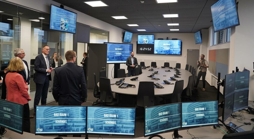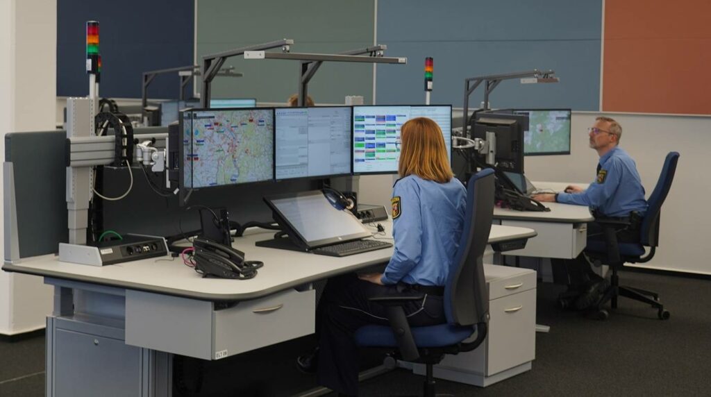 Die neue Führungs- und Lagezentrale verfügt über zentrale Abfrage- und Vermittlungstechnik, ein modernes Notruf- und Einsatzmanagement und ein Leitstellenvisualisierungssystem. Die vielfältigen Aufgaben einer modernen Einsatzzentrale – insbesondere die Steuerung von Einsatzmaßnahmen im Rahmen der Gefahrenabwehr, der Strafverfolgung sowie bei besonderen Einsatzlagen – wurden bei der Planung und Umsetzung umfassend berücksichtigt.