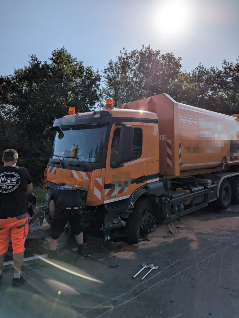 Eine 24-jährige Frau war mit ihrem Pkw in Fahrtrichtung Hachenburg unterwegs und wollte kurz hinter dem Ortsausgang eine Kolonne mehrerer Fahrzeuge überholen. Zeitgleich bog der 53-jährige Fahrer des vordersten Fahrzeugs, eines Pressmüllwagens, nach links auf die Zufahrt zu einem Bauernhof ab. Dabei stießen beide Fahrzeuge zusammen.