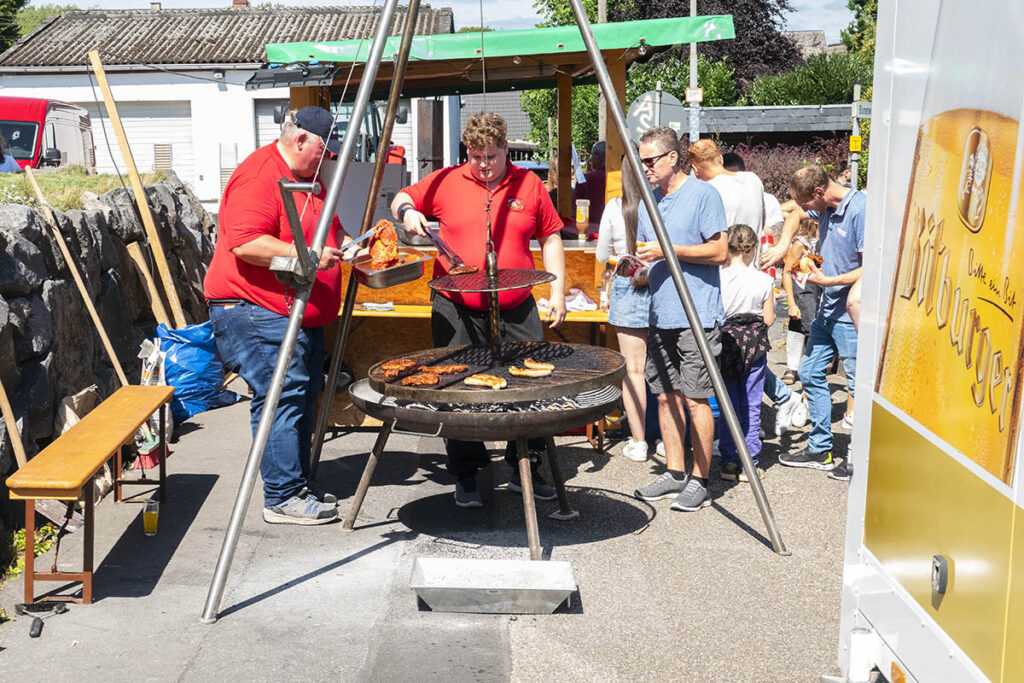 Am Sonntag begann das Programm mit einem Frühschoppen, ergänzt durch eine Ausstellung von Fahrzeugen und Geräten. Auch die Bambinifeuerwehr beteiligte sich und bot Spielstationen für Kinder an. Besonders beliebt war das Löschen eines Modellhauses mit einem echten Feuerwehrschlauch. Mittags lockte ein klassischer Erbseneintopf mit Würstchen, der sich so großer Nachfrage erfreute, dass er schnell ausverkauft war. Alternativ gab es Steaks und Bratwürste im Brötchen. Tatkräftige Unterstützung am Grill erhielt das Team von Edda Hotze, die eigens aus Thüringen angereist war – familiäre Verbindungen hatten sie nach Dernbach geführt.