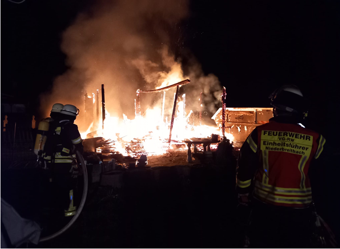 Beim Eintreffen der ersten Kräfte aus Niederbreitbach sowie der ebenfalls alarmierten Einheit Waldbreitbach stand der Wohnwagen bereits in Vollbrand. Zusätzlich war dieser von einer festen Holzkonstruktion umgeben, was die Situation verschärfte. Glücklicherweise befand sich keine Person im Gefahrenbereich.